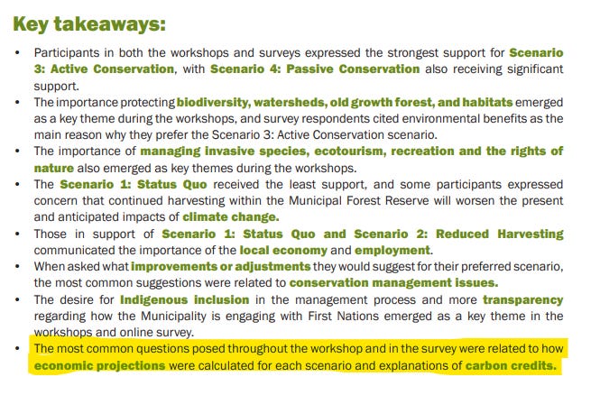 Council partnered with a specific group of University of British Columbia academics to lead the technical review of the forest. Their areas of expertise were conservation biology, forest carbon modeling, climate mitigation, and low carbon futures. Their published work consistently advocates for reduced or eliminated commercial harvesting in sensitive ecosystems.